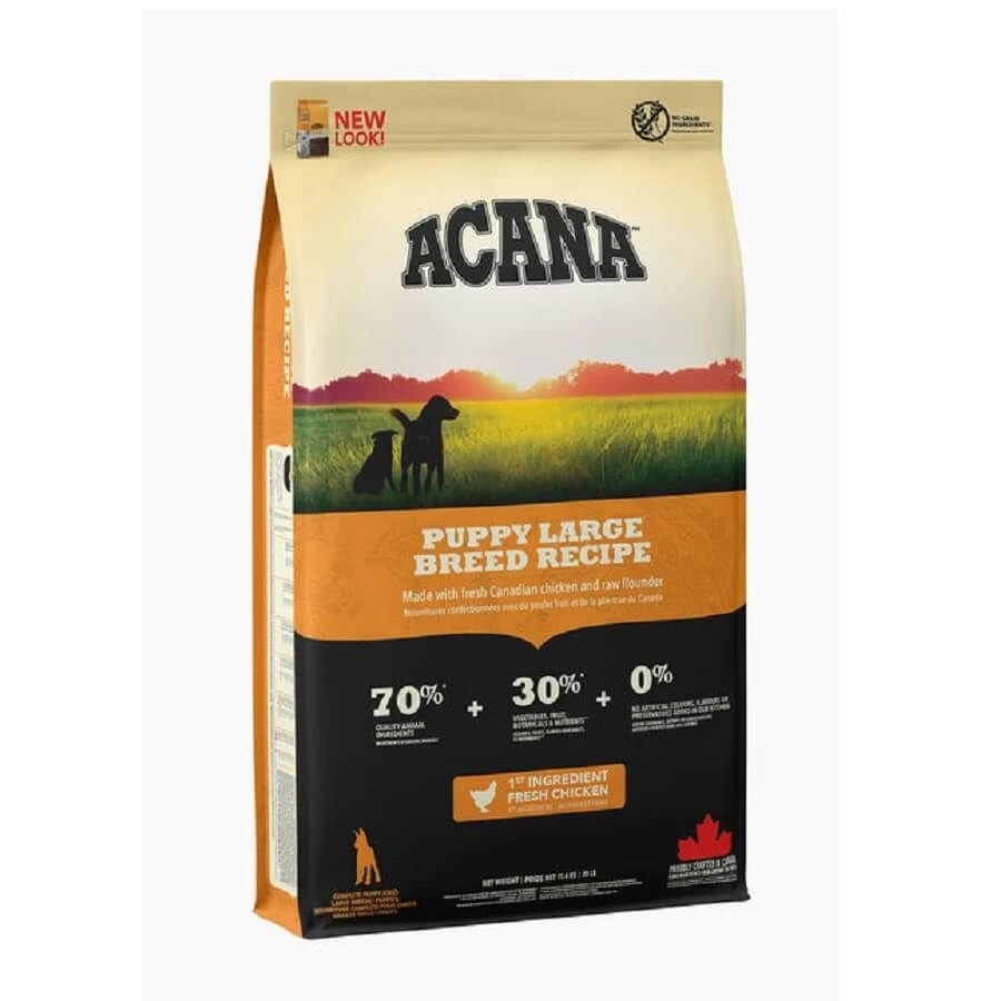 Câest pourquoi ACANA Puppy Large Breed regorge de poulet Ă©levĂ© en libertĂ©, de plie sauvage et dâĆufs pondus au nid, tous livrĂ©s FRAIS dans des proportions correspondant Ă ce que lâon trouve dans les WholePreyâą.