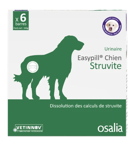 Easypill Struviless Chien est un complément alimentairebappétent qui contribue à la dissolution des calculs de struvite, grâce à son apport en DL-méthionine qui va acidifier les urines.