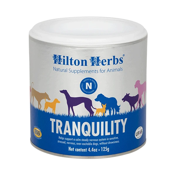 Ce complément alimentaire 100% naturel est destiné aux chiens stressés. Il est également recommandé pour les chiens hypersensibles ou hyperactifs. Tranquility est un calmant pour chiens anxieux, il convient aux chiots, aux adultes et aux seniors. Cette formule 100% maintient l’équilibre du système nerveux et apporte sérénité et calme à votre chien.