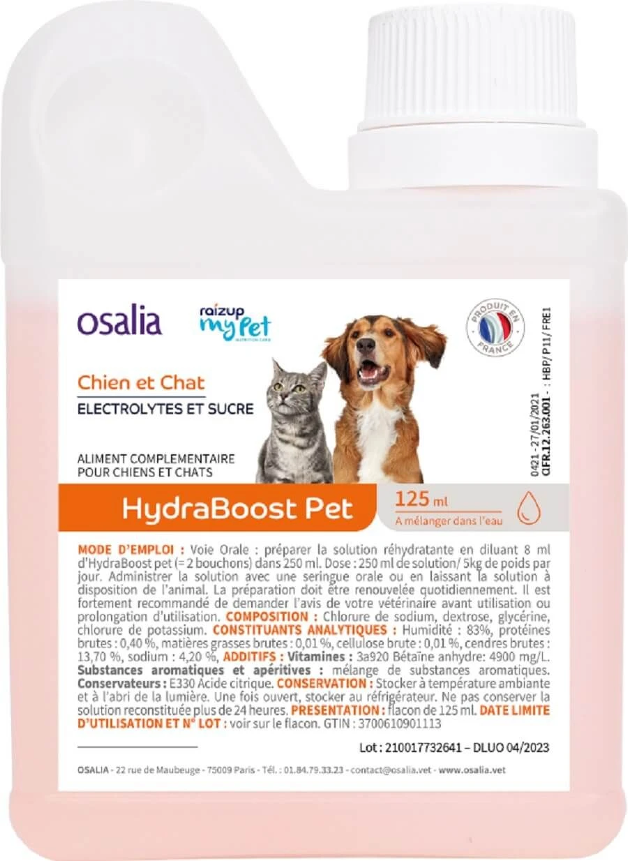 HydraBoost Pet aide à corriger les déshydratations légères à modérées, en stimulant ka prise et boisson et apportant des électrolytes et du glucose. En somme, il favorise la récupération après des troubles digestifs , améliore la resitance aux mauvaises conditions et apporte de l’énergie dans les périodes d’anorexie Le tout avec une excellente appétence et une galénique facile à doser et à administrer.