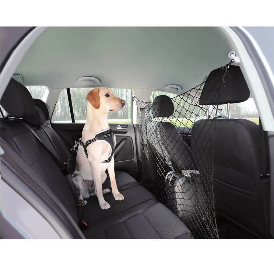 Ce filet permet de transporter vos loulous de maniĂšre plus sĂ©curisante, car il empĂȘchera votre chien de grimper sur vos siĂšges avant ou d’y passer sa tĂȘte, Ă©vitant ainsi une distraction pendant votre conduite.